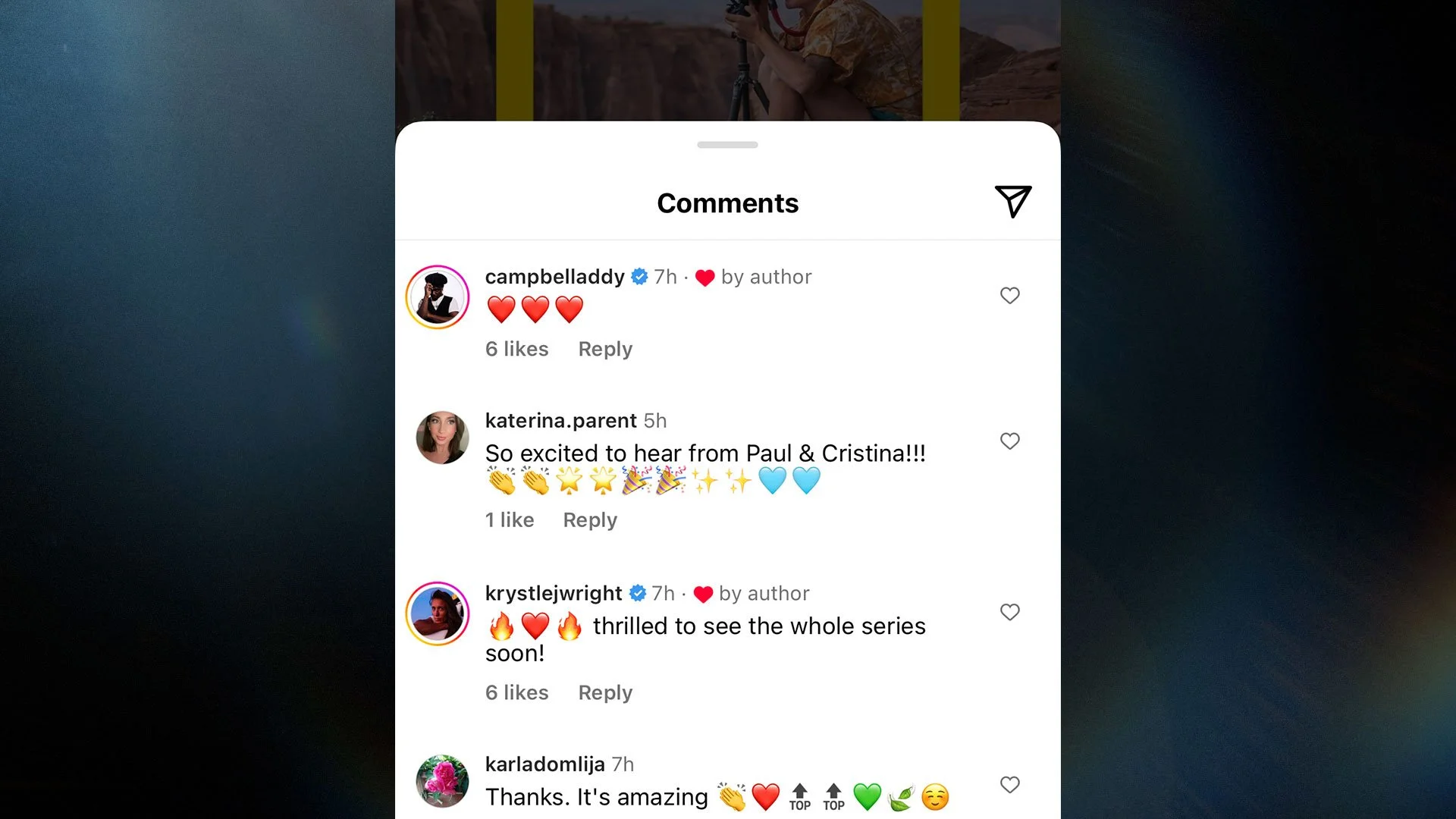 To kick off the premiere, we introduced fans to the six photographers through an immersive carousel, each panel offering a glimpse into their unique stories. I designed, animated, and directed the video segments in each panel. The content resonated, not just with fans, who began forming early connections, but also with the photographers themselves, who enthusiastically reshared the work on their own social channels.